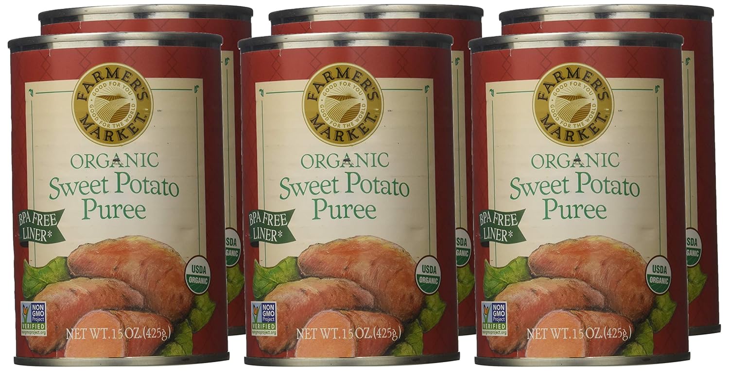 Farmers Market Organic Sweet Potato Puree 15 oz Can Choose a store. Easy to squeeze the puree. 2000 calories a day is used for general nutrition advice but calorie needs vary.