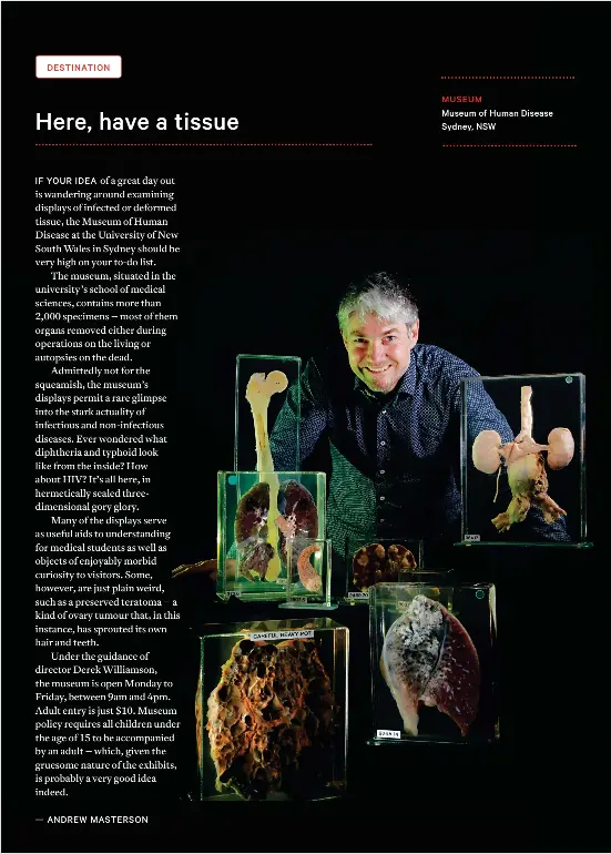 Diseases represented include HIVAIDs cancer stroke heart attack diabetes genetic diseases and the effects of drugs. Australias only publicly accessible Pathology Museum. The museum which displays real organs and body parts is the only dedicated medical pathology collection in Australia that is completely open to the public.