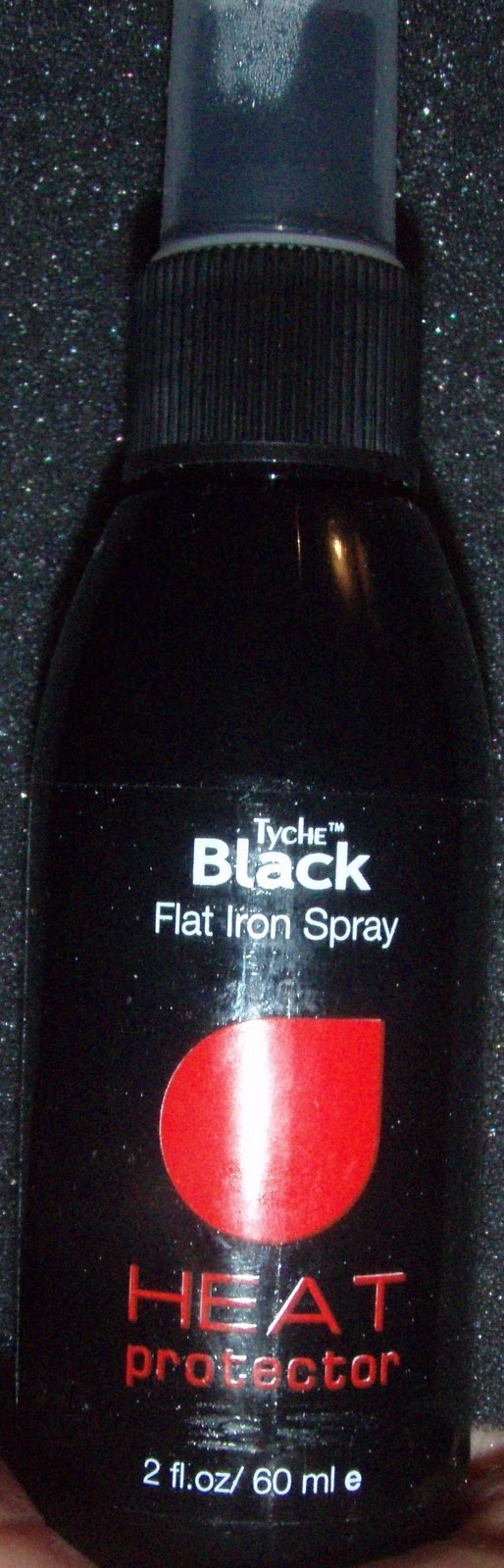 Tyche Black Heat Protector 2oz. Tyche Black Heat Protector Flat Iron Spray is formulated to protect hair from heat damage providing healthy and silky hair. It lock humidity out to reduce frizz while balancing moisture in the hair.