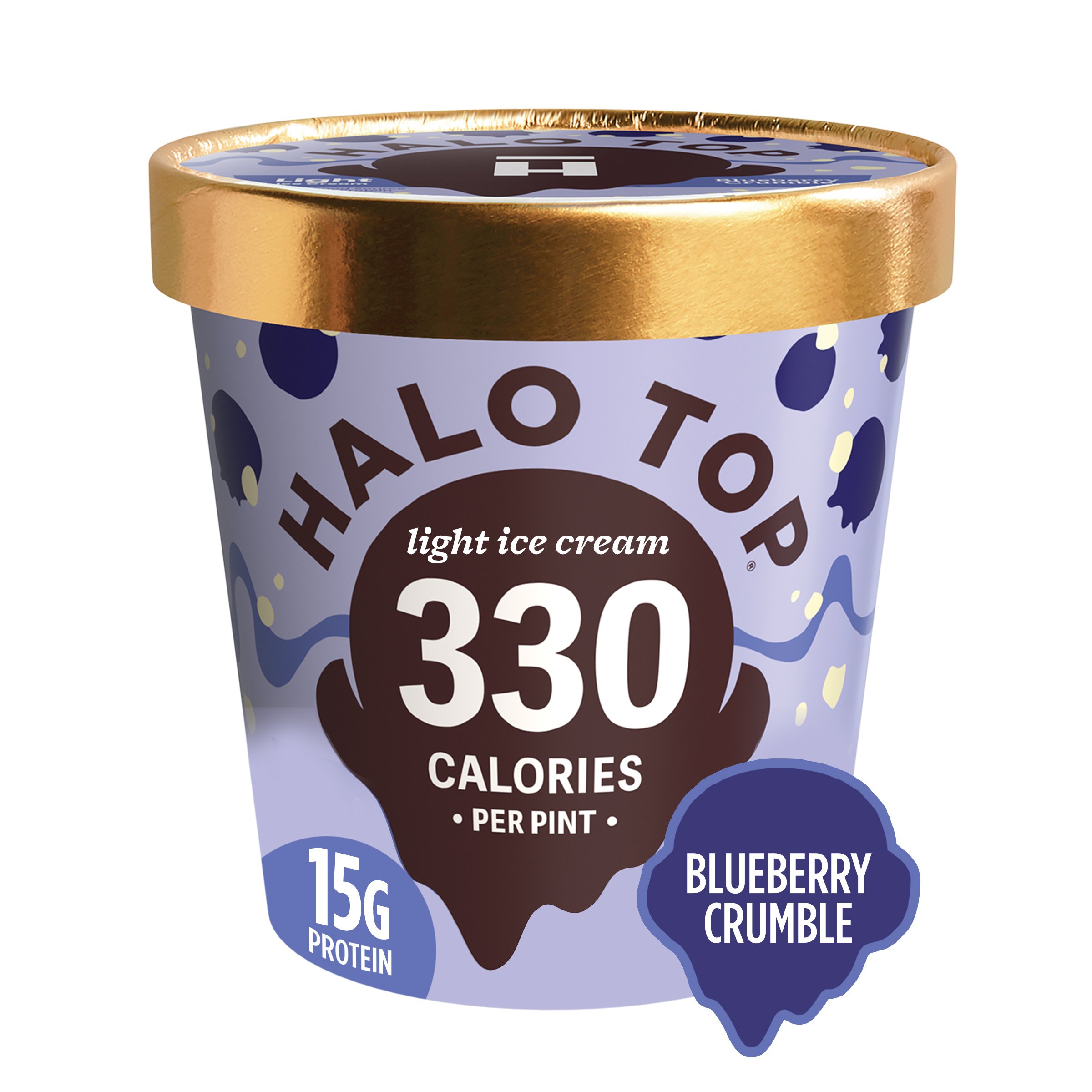 Halo Top Blueberry Crumble. Halo Top Blueberry Crumble Ice Cream Swirls of sweet blueberry pie filling and chunks of pie crust this Blueberry Crumble ice cream delivers the best of spring with an additional 20 grams. Like all Halo Top flavors Blueberry Crumble wont torpedo your healthy eating goals.