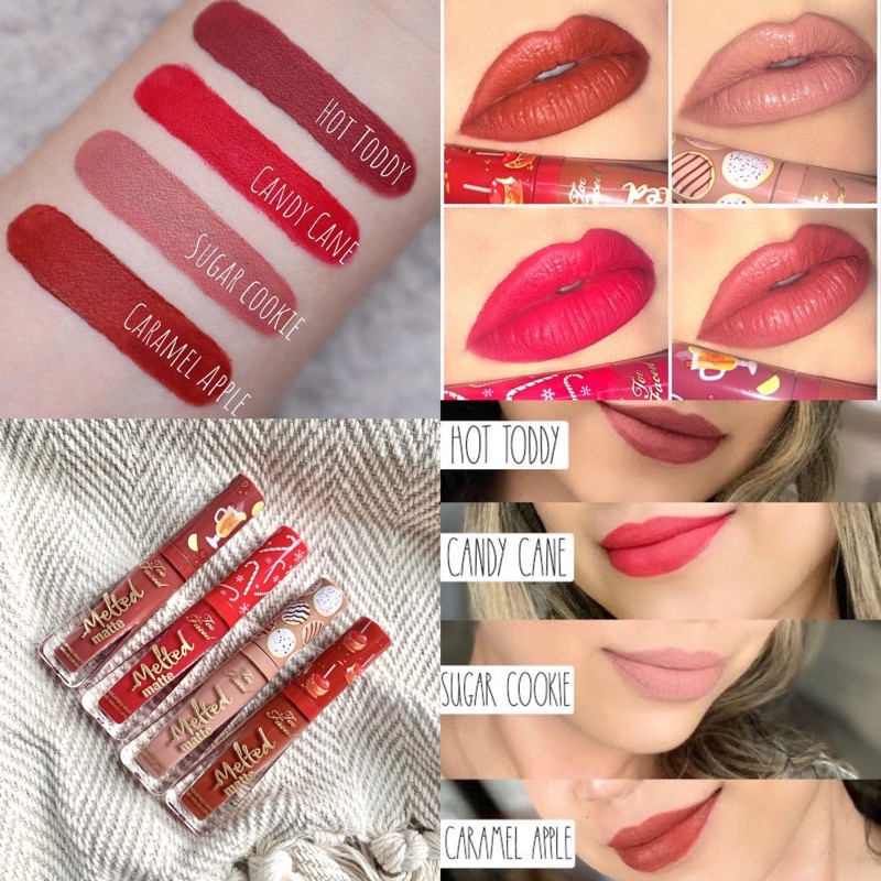 Shop Womens Too Faced Size OS Lipstick at a discounted price at Poshmark. There are 738 shades in our database. Cinnamon gummy bears we got those. Exclusive Christmas shades of your favorite Melted Matte formula Each shade is scented like a different delicious Christmas treat. Apr 19 2021 - Shop Womens Too Faced Red Brown Size 3ml1oz Lipstick at a discounted price at Poshmark. The formula is buttery smooth especially with those shimmers and the pigmentation level is impressive. Lip gloss 15 20.